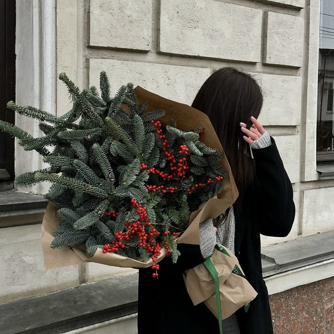 Букет с илексом и ветками нобилиса